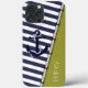 Custom Fun Navy Blue White Stripe Dark Sage Green Case-Mate iPhone Case