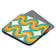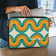 Beautiful contemporary dark yellow, orange, teal blue, ocean green coloured geometric half circles wave pattern on an ivory cream off-white background. With room to customise or personalise with a name monogram or initials of your choice. Ornate, elegant, stylish, and eclectic design for the fancy artistic fashionista, the artsy fashion diva, popular hip trendsetter, vintage retro art style, and abstract digital geometric motif lover.
