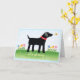 Funny Black Dog Spring Greeting Card with funny inside quote: " When the flowers bloom,