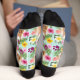 👉 Put a smile on a face with these bright and bold tropical Hawaiian cat photo socks, complete with paw prints. Purrfect gift for a cat Dad or cat Mum! Get yours today!