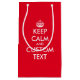 Custom funny keep calm meme Christmas gift bag. Modern typography with crown. Red or custom colour. Fun for unique personalised presents.