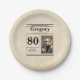 Custom Funny Quote Retro Newspaper 80th Birthday Paper Plate