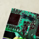 Geeky glitch robotic style creation with green, purple, pink, blue and yellow printed circuit board. Geek and trendy rainbow design. Name and text to personalise on a processor.