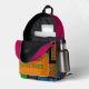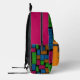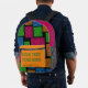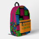 Express your unique style with this customisable geometric backpack. Featuring a vibrant, repeating pattern of abstract shapes in neon colours against a black background, this backpack is a true statement piece. The front pocket offers a perfect space to add your own text, making it a one-of-a-kind accessory for school, travel, or everyday use. Made with durable materials, it combines functionality with a bold, personalised design.