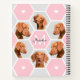 Create your own unique feminine pet photo collage monogrammed spiral notebook with your favourite dog or cat pictures. This template features a 6 geometric photo collage, pink grey hexagon pattern, centre initial in white bold and name in black script font to personalise with your best friend's details.