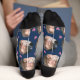 You can show your love for your friend, husband, or partner with these fun and cosy custom-printed socks. This design features a pattern of your own favourite photo along with small cute skitch pink confetti hearts on navy blue background. You can create your own by adding your picture to the round placeholder image. This will be a perfect personalised gift idea and stocking stuffer.