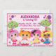 This custom girls birthday party invitation features four colourful rag dolls and customisable text to personalise it.