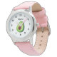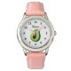 Custom girl's watch with cute green avocado fruit image design. Personalizable wrist watches for children. Unqiue Birthday gift idea for girls. Create one for special daughter, granddaughter, cutest cousin, friend, child, grandchild, little or big sister, mum, vegetarian etc. Fun healthy food design with numbers and elegant typography template. Also nice as Christmas present for the Holidays. Includes girly pink colour band. Add your own name or monogram initial letters.