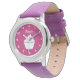 Custom kid's watch with cute  pink cupcake  image design. Personalizable wrist watches for children. Unqiue Birthday gift idea for girls. Create one for special daughter, granddaughter, cutest cousin, friend, child, grandchild, little or big sister, mum, vegetarian etc. Fun fruit design with numbers and elegant typography template. Also nice as Christmas present for the Holidays. Includes purple colour band. Add your own name or monogram initial letters.