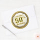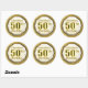 Shown is "Name's 50th Birthday" on these great stickers and envelope seals. Add the birthday name to personalise these great stickers! 50th is in classy gold numbers graphic on a golden background. Shown is the popular round shape sticker. Added to further enhance this sticker seal is a decorative vintage style white frame and gold border with a raised 3d look design. Rich looking and unique, yet affordable! Make great party favours and envelope seals for a golden fiftieth wedding anniversary, 50th birthday, reunion, or any special occasion.