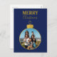 An elegant gold foil look design featuring Christmas ornament, words "Merry Christmas" and your custom photo. A beautiful design showcasing your own photo in a gold themed Christmas ornament. Customise the photo and make it your own!