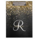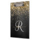 Custom Gold Glitter Black Sparkle Monogram Clipboard