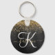 Custom Gold Glitter Black Sparkle Monogram Key Ring