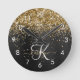 Custom Gold Glitter Black Sparkle Monogram Round Clock