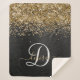 Custom Gold Glitter Black Sparkle Monogram Sherpa Blanket