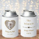 Celebrate your special day with these cute custom gold dog wedding can coolers. Simply personalise with your dog's name, your names, and your dog's photo. This design includes many different ways of personalisation, both in writing and in a photo. The front of this design includes personalised wording, a photo of your dog cut to the shape of a heart, and some pink hearts. The back of this design includes a place for your last name, first names, date of wedding, and an elegant heart divider, Enjoy!