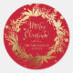 Custom Gold Red Christmas Eucalyptus Wreath Classic Round Sticker