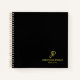 Custom Modern Black And Gold Elegant Script Monogram Template Professional Spiral Square Notebook.