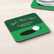 Custom green golf par-tee coasters for golfing party. Great for dinner party, BBQ, Birthday, cocktails, gathering, golfer event, club celebration and more. Elegant putting green design with ball and putting hole. Add your own personalised quote, text or saying. Fun design for player and sports fans. Hard plastic set.