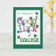 A Good Luck at College greeting card to personalise, with brightly coloured lettering, four-leaf clovers and a horseshoe for luck! A text-based,