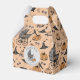 This artsy yet elegant Custom Halloween event favour box features hand-drawn illustrations in black ink by Nathalie Portet. The custom Name, Event and Date are printed on both sides. Against a pastel orange background, images of vintage Victorian baby carriages, witch hats, black crows, pumpkins, spiderwebs, bubbling cauldrons and tiny speckled mushrooms adorn this party favour box. A circle frame showcases your personalised Greeting ("Thank You" can be changed to "Happy Halloween, Congratulations, Happy 1st Birthday", etc.) Name and Date. Ideal for Halloween Baby Showers, 1st Halloween, 1st Birthday, October Baby, New Mother, etc.