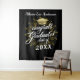 Graduation Party Backdrop. Faux gold foil look with mortarboard cap and starburst in elegant gold and black. Fully customisable -- easily add your own text, change the background colour, text size and style. Classy but festive background setting for your graduate's celebration.