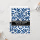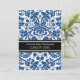 Graduation party invitation custom card in elegant and sophisticated dark navy blue, black and white classic vintage floral damask pattern. Customise this grad announcement card by adding the year of your graduation and your graduation party details.