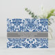 Graduation party invitation custom card in elegant and sophisticated dark navy blue, grey and white classic vintage floral damask pattern. Customise this grad announcement card by adding the year of your graduation and your graduation party details.