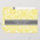 Graduation party invitation custom card in elegant and sophisticated bright lemon yellow, grey and white classic vintage floral damask pattern. Customise this grad announcement card by adding the year of your graduation and your graduation party details.