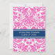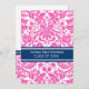 Graduation party invitation custom card in elegant and sophisticated bright fuchsia hot pink, dark navy blue and white classic vintage floral damask pattern. Customise this grad announcement card by adding the year of your graduation and your graduation party details.