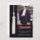 Red & Black custom graduation party invitation. Add the date, graduate's name and photo to the front of this Graduation card, and personalise info on the back. Card designed by Rycky Creations; white tassel original artwork©delightful-doodles. Contact artist for a card with your own school colours!