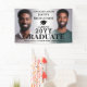 Modern and bold graduation banner personalised with a name, a 2 photo collage of the graduate, a congratulations message, the class, high school or college name and degree or honours, and a grad cap. Use this welcome sign inside or outside for a graduation party. To change the photo placement: click on the button to customise it further, click on "crop", and move the image.