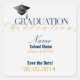 Customised by you, these elegant graduation "save the date" stickers are designed for use as envelope seals on graduation announcements! The perfect way to announce your graduation and also alert family and friends of the graduation celebration! Customise the NAME, SCHOOL NAME, and DATE of the party. To customise, simply click the customise button below the item and type in your information using the guide tools.