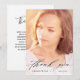This graduation thank you card features modern calligraphy and a full photo of the new graduate. On the front, a black overlay includes the words "thank you" written in pretty script lettering; the graduate's name and graduation year are written below. The typography design overlays a full vertical photo of the graduate. On the back, you can write a custom message to recipients, or delete the template text to create a blank area to write a handwritten note.