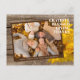 Unique, classy, trendy, pretty and decorative Thanksgiving holiday card. Unique, classy, trendy, pretty and decorative Thanksgiving holiday card. Cute GRATEFUL BLESSED GIVING THANKS text and room to customise or personalise with a photo and names (or family name) of your choice. With cute classic warm yellow fall Mums flowers on a weathered looking grey rustic farmhouse inspired barnwood planks pattern background design. And a customisable season greeting poem on the backside of the card.