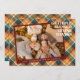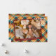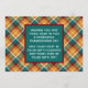 Unique, classy, trendy, pretty and decorative Thanksgiving holiday card. Unique, classy, trendy, pretty and decorative Thanksgiving holiday card. Cute GRATEFUL BLESSED GIVING THANKS text and room to customise or personalise with a photo and names (or family name) of your choice. With cute classic warm yellow fall Mums flowers on a teal blue green, pumpkin orange and dark burgundy wine red coloured rustic farmhouse inspired plaid tartan pattern background design. And a customisable season greeting poem on the backside of the card.
