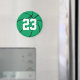 Custom Green Basketball Round Fridge Magnet: Make your own personalised green basketball fridge magnet by typing your own jersey number or other text such as team name or initials, player name or initials, school letters, etc. You can also delete the placeholder text and leave it blank if you just want a simple green basketball magnet. These work great as affordable team gifts for players, coaches and fans of basketball teams with green team colours – discounts are available for bulk orders. They can also be used as senior gifts for your high school or college basketball seniors, or just as a unique birthday or Christmas gift for bball fanatics.