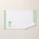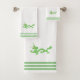 Three stripes on white and custom green dragon image. Elegant modern towel set. Green dragon stands for life, good health and prosperity.
