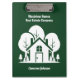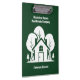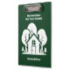 This forest green real estate company clipboard is perfectly customised for a realtor who specialised in houses near the wilderness or woodlands. The white silhouette of trees behind a log cabin home and personalised with your agent and realty business name for marketing in the backwoods.
