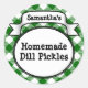 Add your personal touch to your home canning or small business pickle products, or customise this label with your own product text. Features plaid check gingham background in white and green with ribbon like label text, much like a name brand product. Use large sticker for side of standard jar, or wide-mouth jar lid, and use small sticker for regular lids.