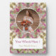 Custom Green Pink Purple Star Wedding Marriage Gift Photo Plaque. Personalise this by adding your own photo and words. A warm colours pink, muted purple, and soft olive green modern geometric pattern starburst surrounds the photo of the bride, groom, or the happy couple. A girly, feminine dopamine decor personalised gift to display in your whimsical living room, boho bedroom or eclectic home office. Celebrate the best day of your life by capturing your cherished happy family memories with this keepsake. Makes a great gift for an anniversary or the parents of the married newlyweds too.