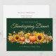 Vintage orange pumpkins and beautiful sunflowers surrounded by autumn leaves decorate this old fashioned Thanksgiving dinner party invitation. Fall celebration invites from our family to our friends on a gorgeous green card with your personalised details on the back.