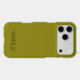 Show off your style with this sleek green-yellow phone case featuring your name in elegant cursive at the bottom. Designed for iPhone 17 and other popular models, this case combines minimalist aesthetics with durable protection. Personalize it with any name, font, and placement to create a unique accessory that reflects your personality. Perfect for everyday use or as a thoughtful gift.
