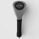 A professional custom branded golf head cover for your business features your logo design. Dark charcoal grey background colour can be modified. Please contact the designer for assistance with personalising this or other promotional items at kathleen@plushpaper.com