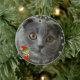 Custom grey cat photo with cute elf Ornament. Ideal for everyone!
