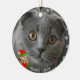 Custom Grey Cat Photo with Cute Elf Ceramic Tree Decoration