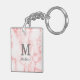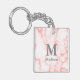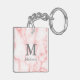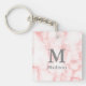 Custom Grey Monogram and Name on Pink Marble Look Key Ring