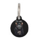 Custom Grim Reaper Sphynx Cat Funny Pet ID tag for cats. Featuring a realistic Sphynx cat grim reaper in a black hooded robe with skeleton hands holding a scythe, an exclusive 'Sphynx Cat Art' design cat id tag. Add Sphynx Cat owner's contact information on the back of this identity pendant cat ID tag, and the cat's name on the front. A must-have for any cat parent, in the event that your hairless Sphynx cat or kitten escapes or gets lost.