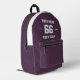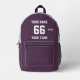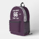 Create your own custom grimace purple and white Sport Football Style Printed Backpack with Name, Number, Team Name, Slogan and Year. Personalise this simple classic Printed Backpack template with your custom message, name, team name and year. Easily personalise it for a cool sport keepsake. Create your unique personalised gift for coach, boy's birthday, football player, teammates and friends.