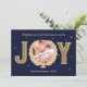 Personalised Christmas card with your hamster's photo, the word joy, and a navy blue and gold coloured design. Personalise this pet-themed card with a festive Holiday message. To add extra text on the back please click the button to edit the design.